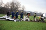 Seelbach. Zur Sicherstellung des Brandschutzes und der Unterstützung der Bundesstelle für Flugunfalluntersuchung (BFU) wurden die Wehren erneut alarmiert. In den Tanks befanden sich noch mehrere hundert Liter Treibstoff. Nachdem die ersten Untersuchungen abgeschlossen waren, wurde durch Wehrleiter Björn Stürz, der wieder die Einsatzleitung innehatte, das THW Betzdorf sowie das THW Westerburg zur Unterstützung angefordert. Die Westerburger THWler stellen die Fachgruppe Bergen und Räumen. Hier ist auch ein Radlager stationiert.