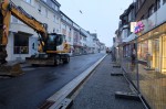 Im oberen Bereich von RegioBahnhof bis etwa zur Einmündung der Gerichtsstraße sind die Arbeiten ebenfalls gut vorangeschritten. Hier wurde gerade die neue Asphaltdecke aufgebracht, nachdem die Stadt- und VG-Werke auch hier die erforderlichen Anschlüsse und Leitungen eingebracht hatten.