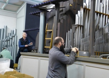 Zu den Feldern, die die Fachleute "beackern" müssen, gehören Arbeiten am Gehäuse und die Renovierung des großen Spieltisches, die Überarbeitung der drei Manuale, des Pedals sowie der Trakturen, also der Wege von den Tasten bis zur einzelnen Pfeife. Bei dieser Orgel mit pneumatischer Spiel- oder Registertraktur muss das Windwerk sowohl den Arbeitswind bereitstellen, der die Ventile zu den 2000 Pfeifen reguliert, als auch den Spielwind, der den Klang in den Metall- oder Holzpfeifen erzeugt. Außerdem werden die Merten-Mitarbeiter ein großes zusätzliches Register, also eine große Holzpfeifen-Tonleiter über mehrere Oktaven, neu hinzufügen.