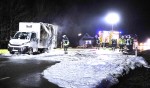 Hasselbach. Die ersten an der Einsatzstelle eintreffenden Kräfte konnten feststellen, dass das Fahrzeug im Bereich des Laderaumes brannte. Die Feuerwehren nahmen einen Löschangriff mit Schaum vor. Der Ladebereich des Fahrzeuges brannte trotz des schnellen Eingreifens der Feuerwehren durch.