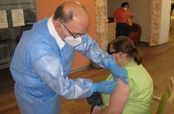 Unter dem Motto "Impfen schützt alle" beginnen im Pflegedorf der Lebenshilfe die Impfungen gegen das Corona-Virus. Bewohner und Mitarbeiter nehmen zu weit über 90 Prozent an der Reihenimpfung teil.