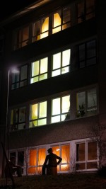 Die Idee des großen Lichtfensters, was weithin zu sehen sein sollte, wurde in einer Videokonferenzen der Geschichts-AG geboren und nach Einhaltung der Hygieneregeln vor Ort installiert – in der Hoffnung, dass es die Menschen zum Innehalten anregt, jedes Mal, wenn sie den Blick hoch zur Hermann-Gmeiner-Schule richten.