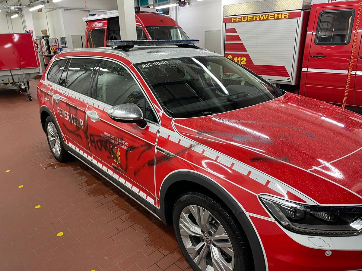 Er habe das Fahrzeug kurz abgestellt und fußläufig den Bereich der Teststation kontrolliert. Nach kurzer Zeit sei er zu dem Kommandowagen, der eindeutig als Einsatzfahrzeug zu erkennen ist, zurückgekehrt. Hier habe er dann die Beschädigung durch Graffiti wahrgenommen und die Polizei informiert. Die Beamten schauten sich im Nahbereich um, konnten die vermutlichen Täter aber nicht mehr auffinden.