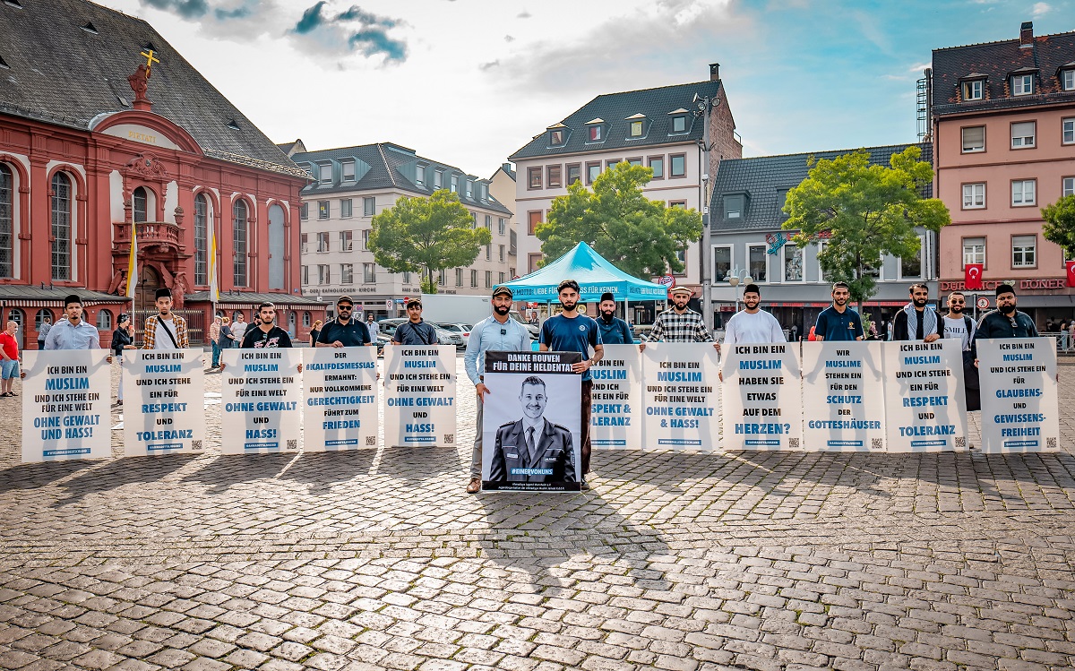 Die Jugendlichen stellten sich am Tatort auf und sorgten für große Aufmerksamkeit. Viele Passanten kamen bereits während des Aufbaus auf sie zu, um über den Vorfall und die tatsächlichen Lehren des Islam zu sprechen. Im Vorfeld hatte Athar Iqbal aus Betzdorf gemeinsam mit Alim Bhatti (Organisator aus Mannheim) ein Schild entworfen, auf dem das Bild des ermordeten Polizisten Rouven mit der Aufschrift "Danke Rouven, für deine Heldentat" zu sehen war. Die Resonanz darauf war sehr positiv. Viele andere Muslime bedankten sich nach Aussage der Ahmadiyya Muslim Gemeinde für deren Präsenz und betonten die Wichtigkeit, Solidarität zu zeigen.