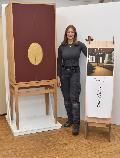 Jule Nelles aus Bad Neuenahr-Ahrweiler sicherte sich den dritten Platz im Design-Wettbewerb mit ihrem Weinschrank aus Eiche, der durch vergoldete Türbereiche hervorsticht. Ihre Arbeit zeichnet sich durch klare Linien und eine gelungene Materialkombination aus Holz und Blattgold aus.