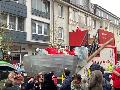 Gegen 14.11 Uhr setzte sich der Festzug auf der Koblenzer Straße in Bewegung, zweieinhalb Stunden später erreichte der letzte Wagen den Zielpunkt am Bahnhof. In der Zwischenzeit gab es für die Zuschauer richtig was zu sehen – und ordentlich Kamelle. Wieder einmal hatten sich die über 1000 Zugteilnehmer, aufgeteilt in 54 Gruppen, einiges einfallen lassen, um die Gäste mit ihrem jecken Hobby zu begeistern. Ein Highlight war sicherlich der hüpfende Wagen mit Renn-Motiv der Dorfjugend Birkener Höhe. Aber auch das Piratenschiff der SG Merschbisch und der einsame Brezelverkäufer werden lange im Gedächtnis bleiben.