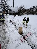 Rennerod. Am Donnerstagnachmittag (19. Februar) wurde die Feuerwehr Rennerod aufgrund von hochwinterlichen Straßenverhältnissen zu einem Unfall auf der B54 alarmiert. Zwischen den Ortschaften Rennerod-Emmerichenhain und Zehnhausen war ein mit Trinkgut beladener Lkw in den Straßengraben gerutscht und hatte dabei seinen Kraftstofftank beschädigt. Der Fahrer blieb glücklicherweise unverletzt, jedoch lag das Fahrzeug in Schräglage und drohte weiter abzurutschen.