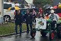 Pünktlich um 15 Uhr startete der Umzug ab der Zechenwaldstraße. Flankiert von den Einsatzwagen der freiwilligen Feuerwehr zogen hunderte Schaulustige so gute 40 Minuten durch die Straßen des kleinen Orts. In ihrer Mitte fuhren die drei festlichen Paradewagen. Zwei zeigten eine Apres-Ski-Hütte und eine Skeleton-Fahrerin, der dritte und größte diente der Protagonistin und ihren Angehörigen zur Fortbewegung. Wie gewaltig der Andrang tatsächlich war, wurde bei der Ankunft an der Peter-Hussing-Halle ersichtlich: Gegen 15.40 Uhr erreichte der Zug den ihr vorgelagerten Schulhof und hielt für ein kleines Feuerwerk am hinteren Ende in perfekter Aufstellung. Vom anderen Ende aus war nun nur noch ein Meer aus Regenschirmen zu erkennen, die den gesamten Hof zu umspannen schienen.