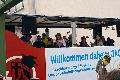 Vor und in der Halle gab es Gastrostände, an denen Freibier ausgeschenkt wurde. Leider schien man bei der Organisation im Voraus selbst nicht mit einem solchen Andrang gerechnet zu haben, weshalb der Einlass in die Halle katastrophal verlief. Die Halle hatte nicht im Ansatz die Kapazitäten, das gesamte Feiervolk aufzunehmen, sodass es sich vor den Eingängen mächtig staute. Dabei war die zugrundeliegende Angst, etwas zu verpassen, gänzlich unbegründet: Über Lautsprecher wurde das Bühnenprogramm auch nach außen übertragen.