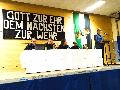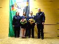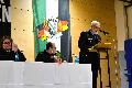 Anschließend wurde der verstorbenen Feuerwehrkameraden gedacht, als ein Trompeter "Ich hatt' einen Kameraden" spielte. Das ist immer wieder ein berührender und sehr emotionaler Augenblick, der bei vielen Floriansjüngern Gänsehaut erzeugt. Es folgten einige Grußworte, allen voran Achim Schwickert, Landrat des Westerwaldkreises, der wie immer klare Worte zu aktuellen Themen fand. Der Ton in der Gesellschaft sei insgesamt rauer geworden, davon sei auch die Blaulichtfamilie betroffen. Der Aufgabenbereich der Feuerwehren würde ständig erweitert, sodass die Einheiten auch zu Einsätzen angefordert werden, die nicht unbedingt notwendig wären. Ein weiteres Manko wäre der Umstand, dass es im Westerwald praktisch keine Schutzräume (Bunker) gäbe. Am Ende überreichte der Landrat einen Briefumschlag an Michael Itzeck, in dem sich sehr wahrscheinlich ein Scheck befand, dessen Betrag angesichts der knappen Haushaltskassen hoffentlich nicht zu knapp bemessen war.