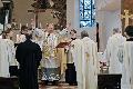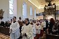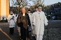 Die Kirche füllte sich schnell mit rund 400 Gottesdienstbesucherinnen und -besuchern, darunter eine große Abordnung der Freiwilligen Feuerwehr der Verbandsgemeinde Wissen mit dem Wehrleiter Stefan Deipenbrock. Den Einzug der Geistlichkeit gestalteten die Schützenbruderschaften aus dem Stadtteil Schönstein und der Ortsgemeinde Birken-Honigsessen sowie der Schützenverein Wissen, die Karnevalsgesellschaft und die Kolpingfamilie jeweils mit ihren Fahnen. Alle Anwesenden konnten merken, dass die Neueinsegnung des Gotteshauses bei Pfarrer Kürten wie eine Befreiung wirkte. Die lange Zeit des Wartens (und oft auch des Bangens) war vorbei. Die feierliche Messe wurde durch einen Projekt-Chor, geleitet von Andreas Auel sowie Musikern und Musikerinnen der Bergkapelle "Vereinigung" Birken-Honigsessen musikalisch begleitet. Im Rahmen der Ökumene war der evangelische Pastor Tesch ebenfalls erschienen und gestaltete den Gottesdienst mit.