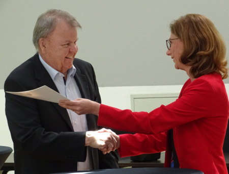 Kirchen. Sabine Bätzing-Lichtenthäler, Ministerin für Soziales, Arbeit, Gesundheit und Demografie des Landes Rheinland-Pfalz, war nach Kirchen gereist, um Dr. med. Wolfram Johannes, Facharzt für Innere Medizin und Allgemeinmedizin, den Titel des Sanitätsrats zu verleihen. SPD-Politikerin Bätzing-Lichtenthäler erklärte zu Beginn ihrer Rede im Kirchener Ratssaal, dass sich in keinem Bundesland so viele Menschen ehrenamtlich engagieren wie in Rheinland-Pfalz: „Das kommunale Leben ist undenkbar ohne das Ehrenamt.“