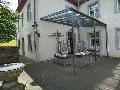 Gestärkt geht man durch das Tor auf das eigentliche Klostergelände (Fotos 23 und 24). Direkt rechts hinter dem Eingangstor befindet sich eine Buch- und Kunsthandlung, der man einen Besuch abstatten kann (Foto 25). Dort kann man sich ein wenig durch die vorhandene Literatur schmökern. Der Klosterladen legt besonderen Wert auf den Verkauf selbst hergestellter Marienstatter Produkte sowie auf ein sorgfältig ausgewähltes Buchsortiment und bietet zusätzlich sakrale Kunstgegenstände wie Figuren und Krippen, oder für eine Andacht notwendige Utensilien, an. Das Sortiment individuell beschrifteter Kerzen für besonderen Anlässe, wie beispielsweise Taufe, Hochzeit, Kommunion, Konfirmation oder Firmung, ist besonders interessant. Als klostereigene Produkte werden Marmeladen und Chutneys, das Klosterbier in Flaschen, Brände und Liköre sowie eigene CD-Produktionen angeboten. Anschließend kann man sich noch ein wenig auf dem Klostergelände umschauen (Fotos 26 und 27).