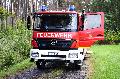 Eine weitere Station war dann die Schaffung von Schneisen mit einfachen Mitteln. Hier war Muskelkraft gefordert, um mit Hacken und Schaufeln den noch nicht betroffenen Bereich vor dem Brandgeschehen zu schützen. Den Einsatzkräften wurde deutlich, dass bei genügend Kräften ein Eingrenzen eines Brandes möglich ist. Auch muss man verinnerlichen, dass eine kleine Fläche, die dem Brand zum Opfer fällt, in Kauf genommen werden muss, um große Teile zu retten. An einer weiteren Station wurden dann die Möglichkeiten des „Pump and Roll“, das ist die Wasserabgabe während der langsamen Fahrt, demonstriert. Diese Möglichkeit bieten heute viele wasserführende Feuerwehrfahrzeuge.